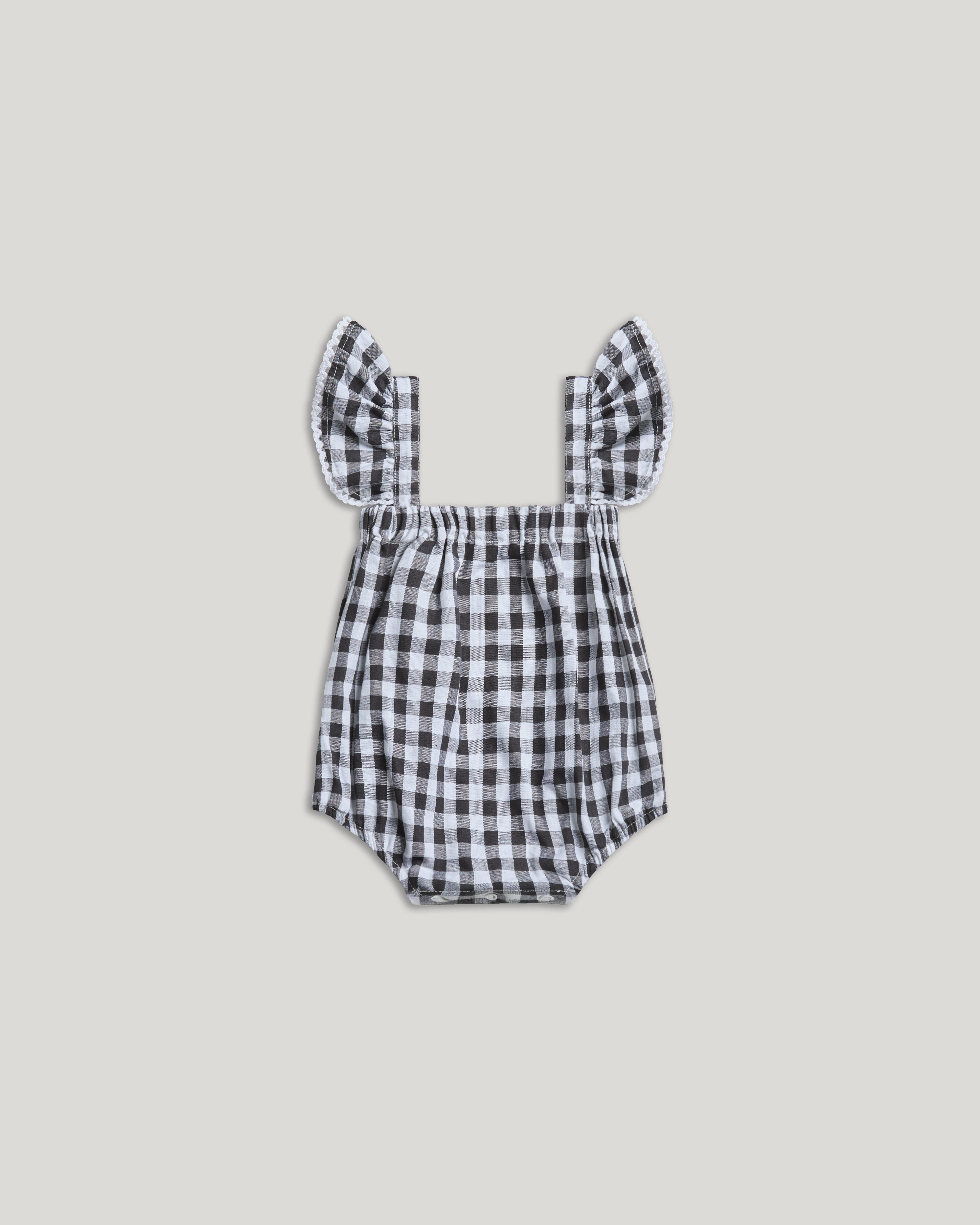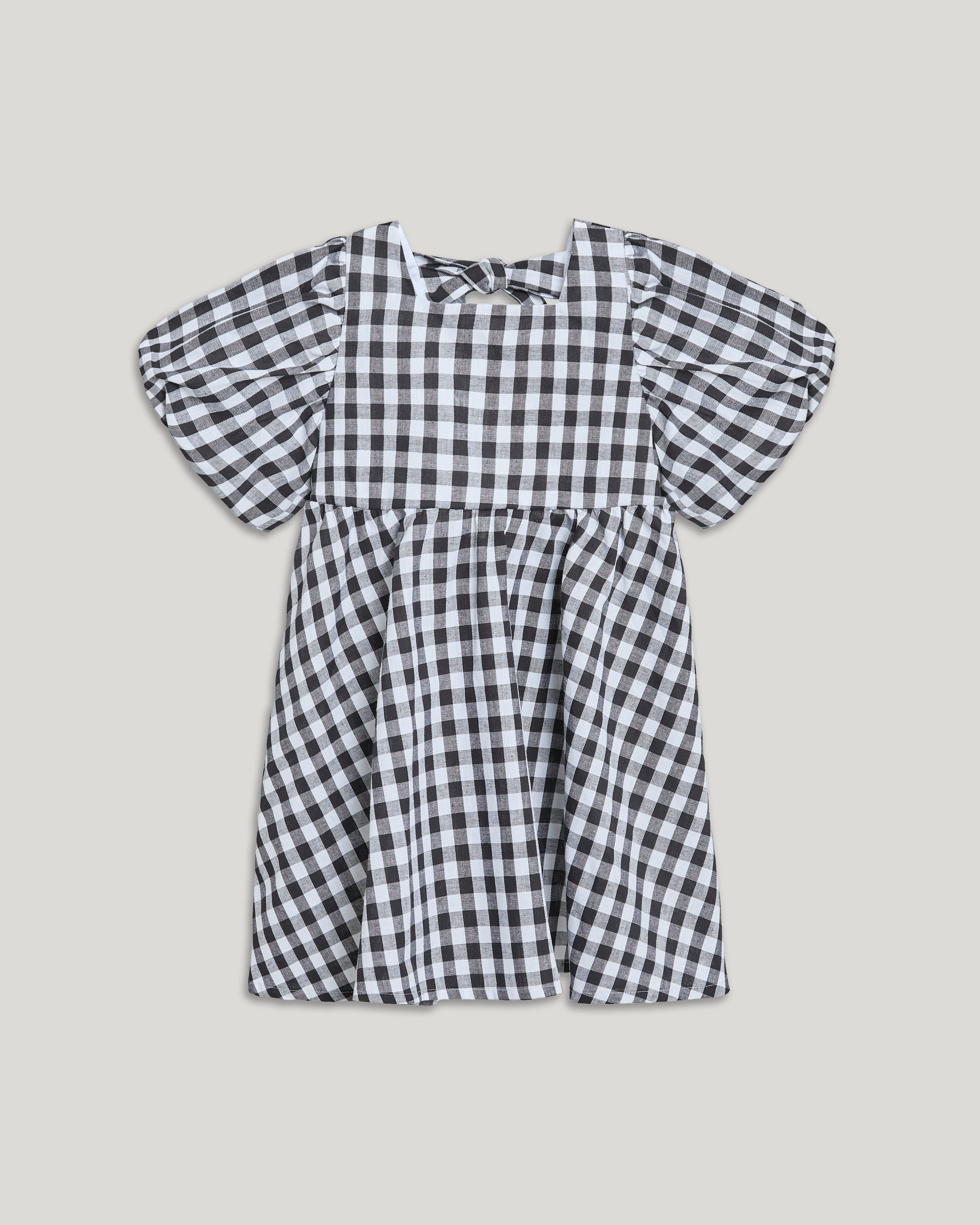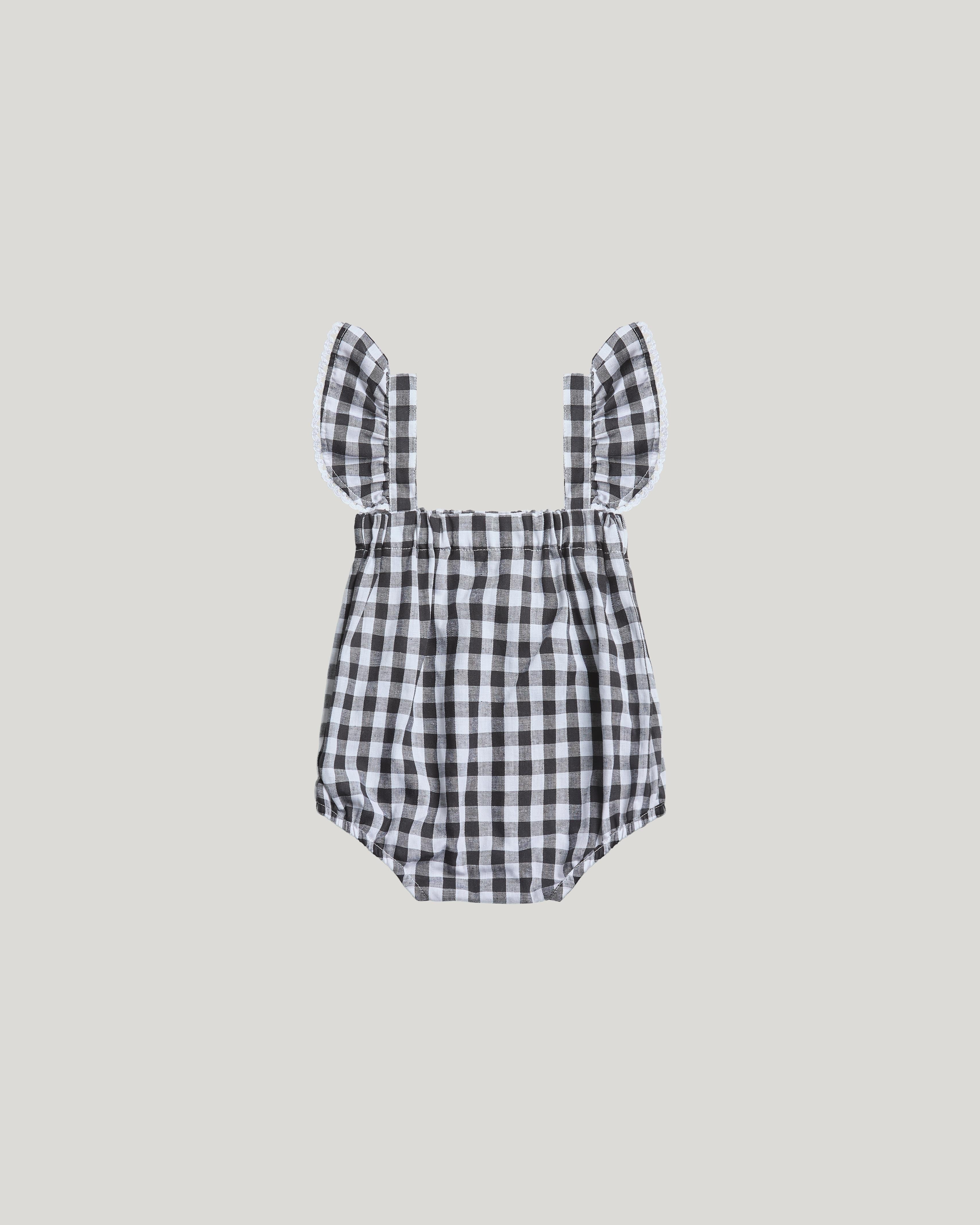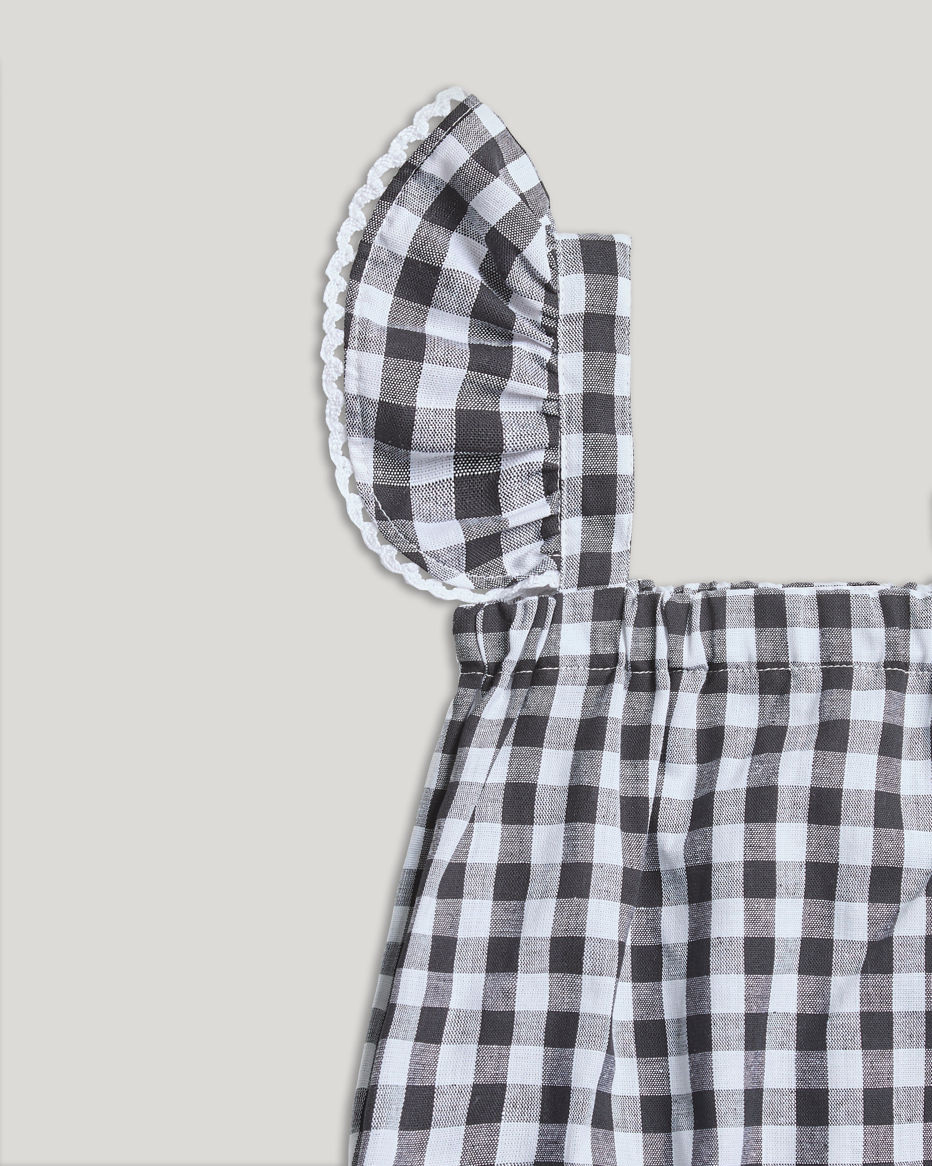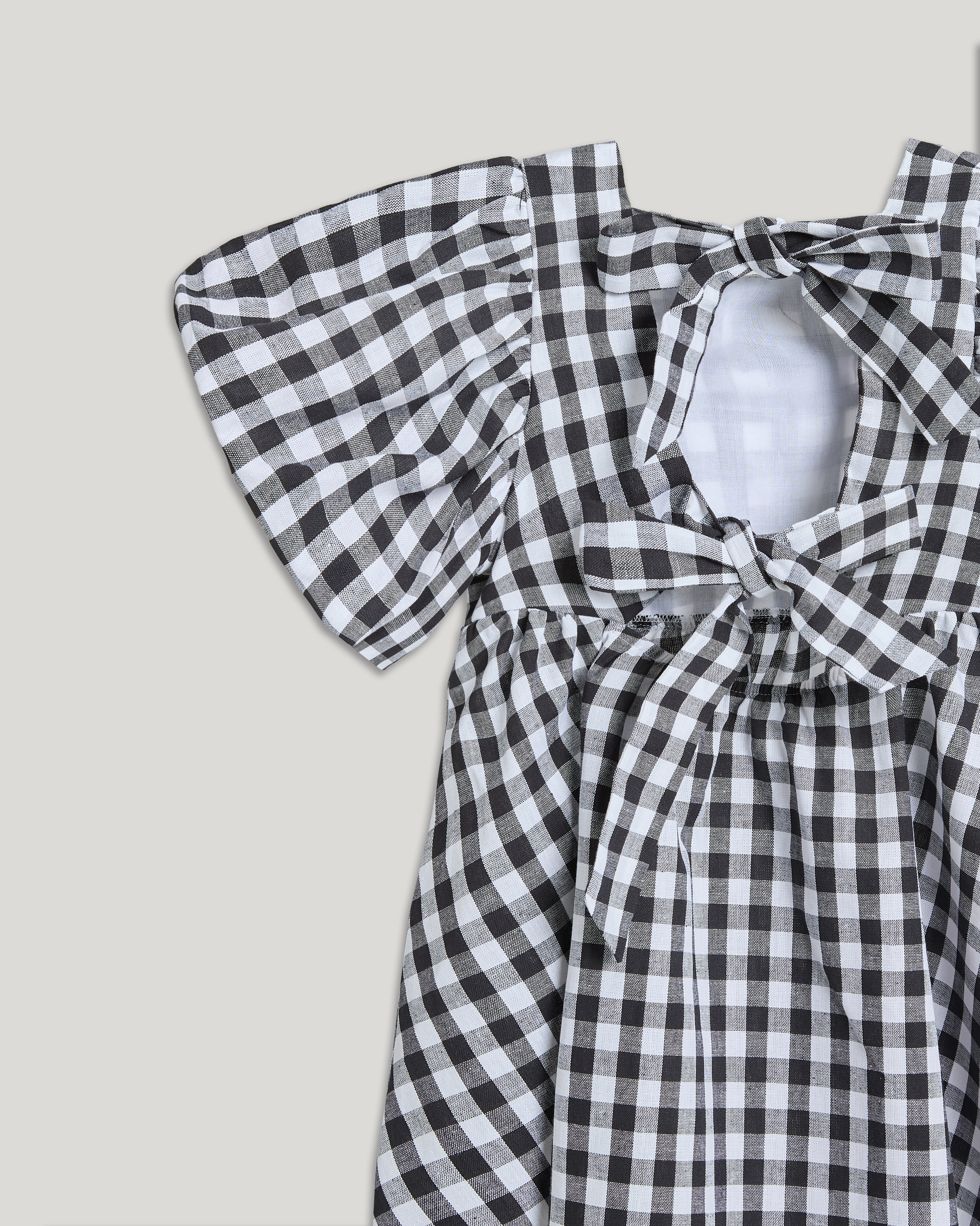 Fresco, leggero e giocoso. Charly nasce per vivere giornate luminose, risate all’aria aperta e momenti di complicità. Il suo tessuto in cotone naturale a quadretti bianco e nero evoca semplicità autentica, con una costruzione sartoriale che fa la differenza al tatto e alla vista.